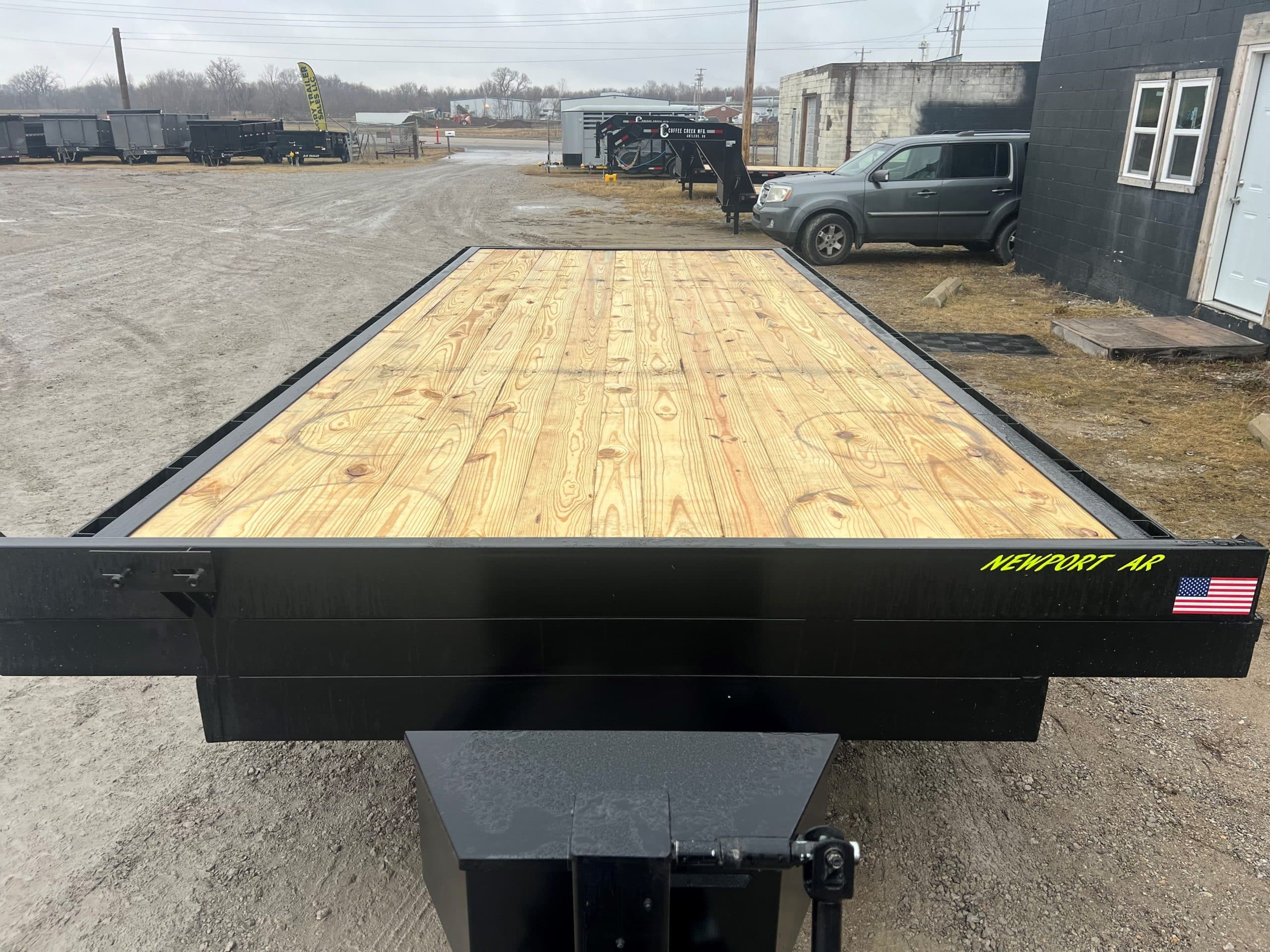 BREAKAWAY SYSTEM 6IN FRAME AND WRAPPED TONGUE 3IN CHANNEL CM’S ON 16IN CENTERS ADJUSTABLE DEMCO HITCH 12K DL JACK TOOL BOX TREATED FLOOR LED LIGHTS 8FT SLIDE OUT RAMPS 1 YEAR WARRANTY CORY TRAILER SALES LLC 5109 W 21ST ST TULSA 74107 918619SIX5SIX7